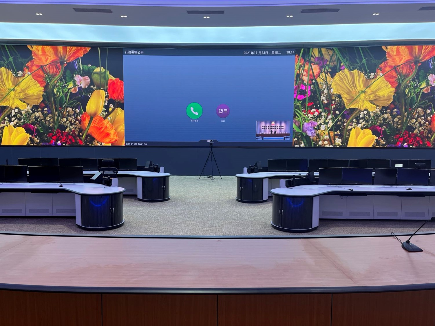 中國石油運(yùn)輸公司調(diào)度中心項(xiàng)目位于北京順義和新疆烏魯木齊兩地,兩地調(diào)度中心各建1套1.56mm的LED監(jiān)控大屏,并重點(diǎn)對(duì)兩地視頻會(huì)議功能進(jìn)行升級(jí),由原來模擬視頻會(huì)議終端升級(jí)為高清終端,實(shí)現(xiàn)雙路高清攝像機(jī)信號(hào)的實(shí)時(shí)切換及雙流顯示。保證兩地調(diào)度中心會(huì)場互聯(lián)互通,實(shí)現(xiàn)視頻交流,通過集團(tuán)M